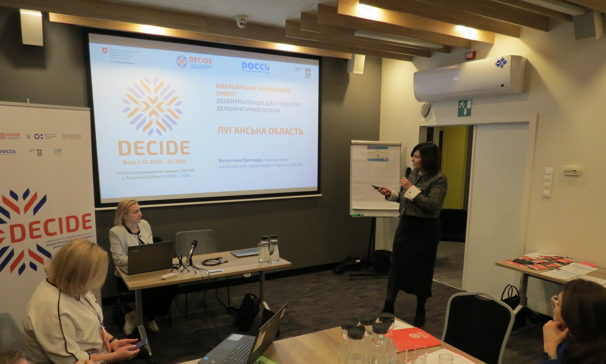 Протягом двох днів роботи учасники обговорювали з експертами DECIDE механізми модернізації управління освітою, налагодження ефективної взаємодії в команді, управління стресами у професійній діяльності, мистецтво успішної комунікації з цільовими аудиторіями тощо. Окрема увага була приділена питанню професійного навчання та професійного розвитку персоналу для публічної служби.
