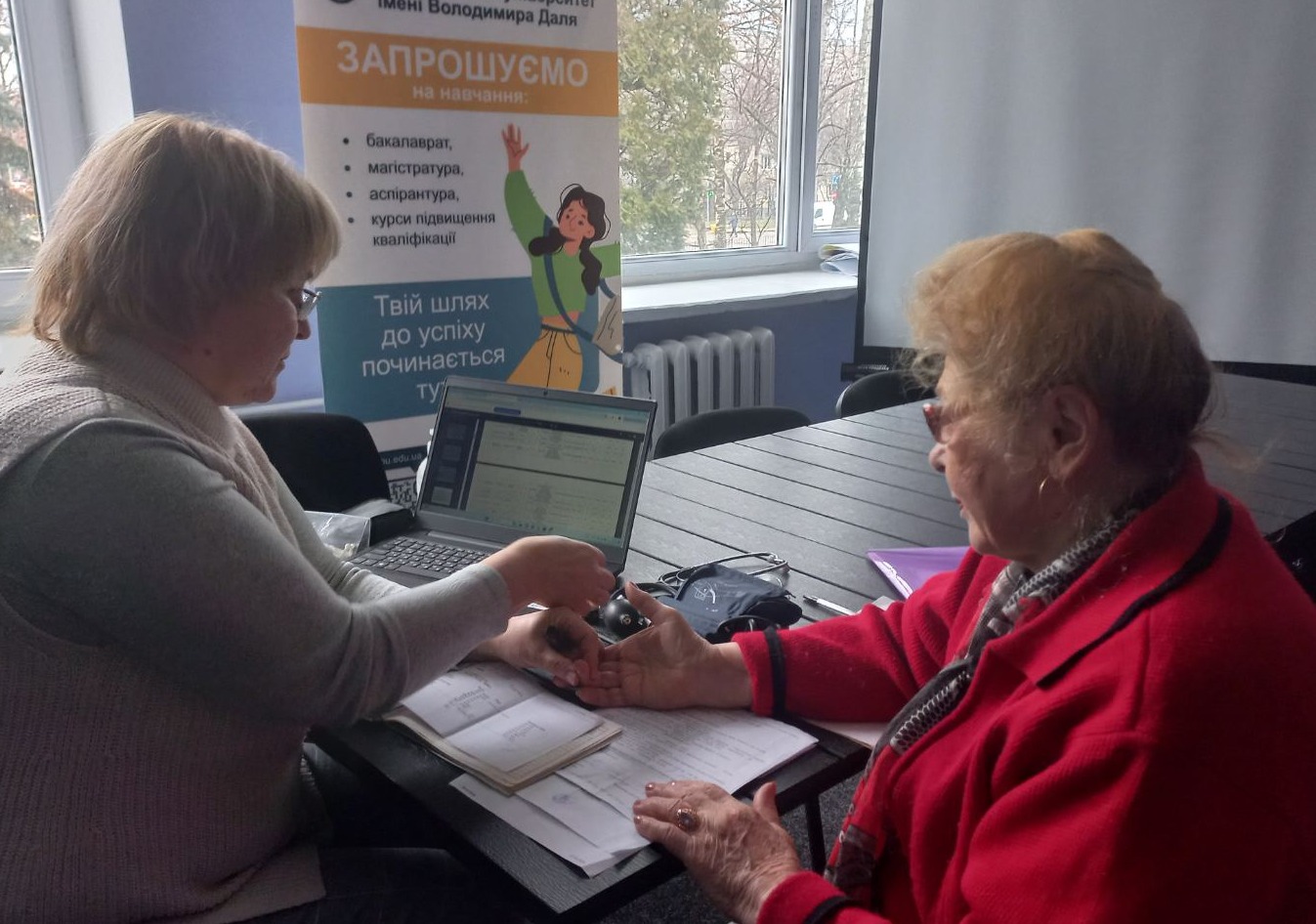 Прийом лікаря відбувається щосереди, з 10.00 до 14.00, під час якого лікар за показанням може видати наявні ліки, провести такі обстеження: вимірювання артеріального тиску, рівня глюкози у крові, термометрію, пульсоксиметрію, виявлення гепатиту В, С, СНІДу, сифілісу швидкими тестами тощо.Крім того, щосереди, у гуманітарному штабі ВПО з Луганщини можуть отримати послуги психолога.