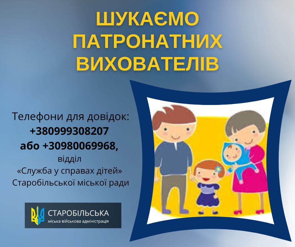 Відділ «Служба у справах дітей» Старобільської міської ради звертається до всіх бажаючих: якщо у вас є бажання підтримати дитину та стати патронатним вихователем, звертайтесь по телефонах: +380999308207 або +30980069968, пишіть на електронну скриньку Ця електронна адреса захищена від спам-ботів. Вам необхідно увімкнути JavaScript, щоб побачити її.
