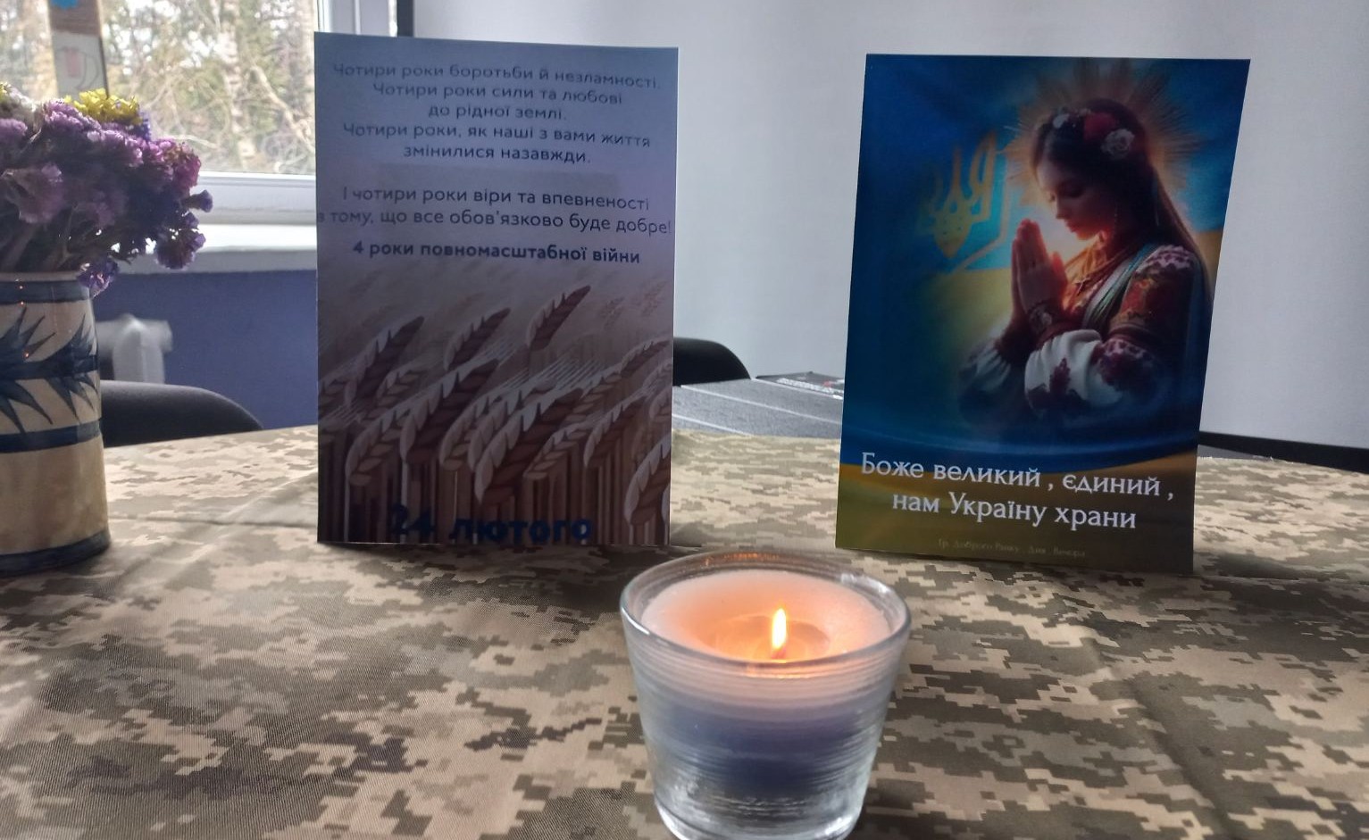 В четверті роковини повномасштабного вторгнення співробітники Старобільської МВА та виконавчого комітету Старобільської міської ради запалили символічну свічку пам’яті про загиблих захисників – жителів громади, приєдналися до загальнонаціональної молитви про Україну.