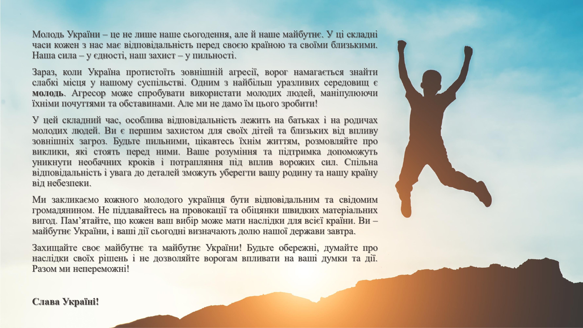 Про це повідомляють правоохоронці. З метою запобігання втягування представників молодіжного середовища у діяльність на шкоду національній безпеці України необхідно виявити пильність та обережність як з боку дорослих, так і самих підлітків, пам’ятати про відповідну небезпеку в реальному житті та під час онлайн спілкування.