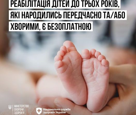 Передчасно народжені малюки або немовлята, які з’явилися на світ з певною фізіологічною патологією, потребують особливого медичного догляду і реабілітації. Її безоплатно надають у закладах країні, які мають договір із НСЗУ за пакетом “Медична реабілітація немовлят, які народились передчасно та/або хворими, протягом перших трьох років життя”.