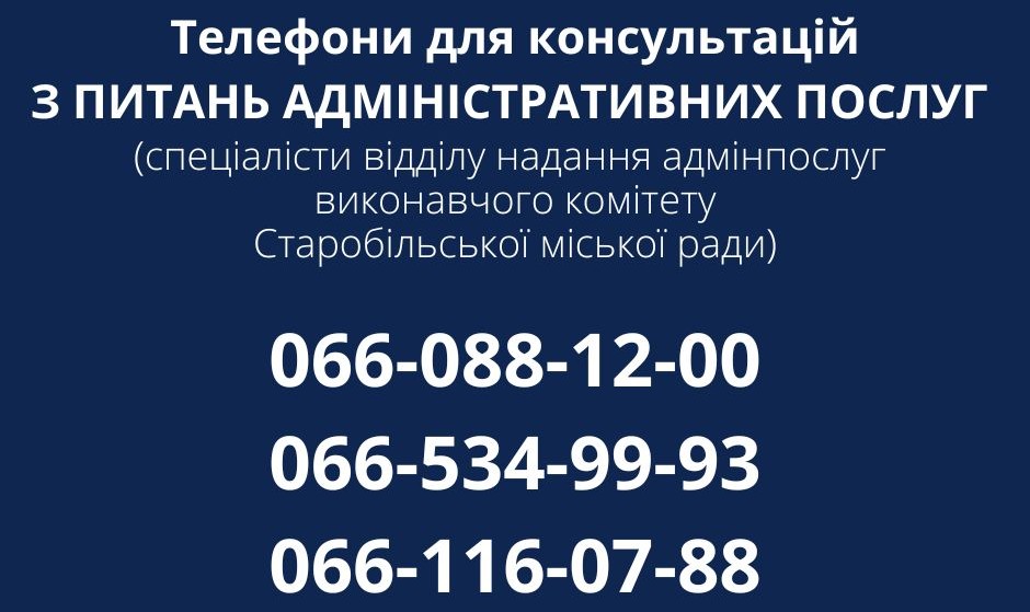 Адміністративні послуги в Старобільській громаді протягом 2025 року надаються в гуманітарних штабах Щастинської районної військової адміністрації (м.Суми) та Новоайдарської селищної військової адміністрації (м.Ужгород), звернутися за консультацією до спеціалістів відділу надання адміністративних послуг виконавчого комітету Старобільської міської ради можна також телефоном.