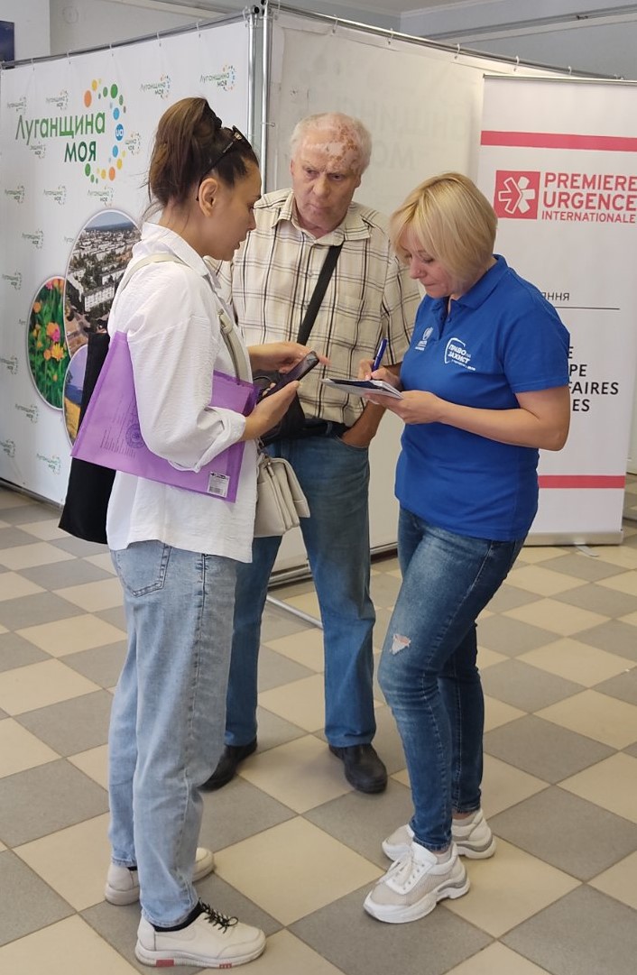В цей же час консультації надавали терапевт та кардіолог, які працюють у складі мобільної медичної бригади французької організації Прем'єр Уржанс Інтернасьональ За потреби ВПО мали змогу отримати ліки, зробити кардіограму та деякі аналізи.